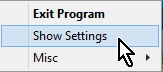 - Double-click on the system-tray icon, or right-click on it and select "Show Settings".