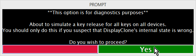 - If for whatever reason a hotkey simply will not work & does nothing, it's possible that a key has gotten jammed or that the OS, DisplayClone, or both believes that the key is still depressed.