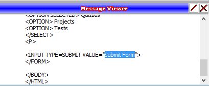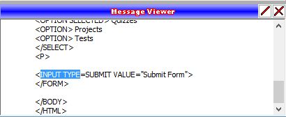 The value_text html script command collects characters from the next web form value attribute that follows the current highlighted position. The collected text is added as value to the last line in the object / value table on the message content panel.