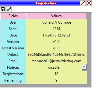 Initially, the user supplies a valid Email which is sent to the registration server prior to first registration. The user may change the registered email on the registration server at any time after registration. It's purpose is for the server to supply notices when newer versions of the program become available, subject to the user's preference for receiving such notices (see the next parameter).