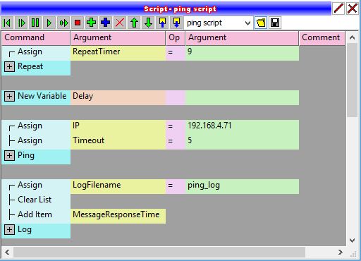 While ScanEngineExplorer can fetch a web page, interrogate an SNMP agent, or ping a destination, using a script an action can be automatically repeated, the results logged, tabulated, or charted, and actions customized based upon the results of any operation. It is through scripts that ScanEngineExplorer can transition from a mere network exploration tool into a powerful management capability. The script panel permits the user to easily arrange any sequence of program commands. The script system automatically keeps track of the capabilities or syntax for you so that the user doesn't need to be an experience programmer. However, with the power to automate virtually any action, scripts can be as simple or complicated as the user desires. In order to keep things managable, the script system provides the ability to single-step through script execution while providing complete visibility of everything at every step, thus assisting even the novice to successfully create working scripts. |